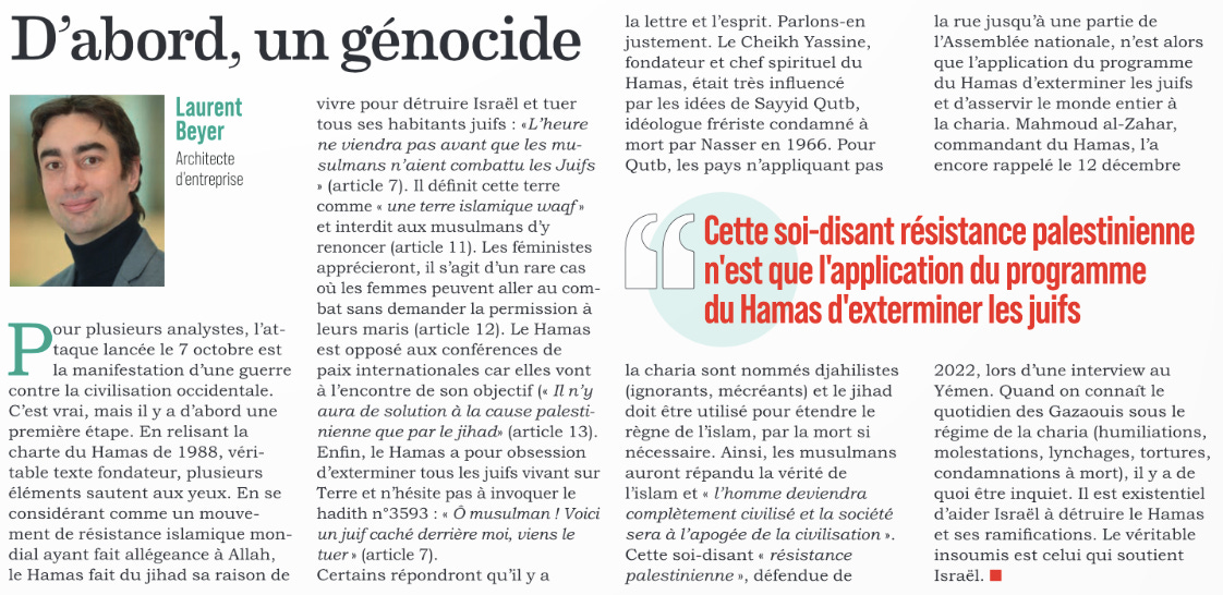 Veuillez trouver ci-joint la version courte de mon dernier article paru dans Actualité Juive : “D’abord, un génocide”